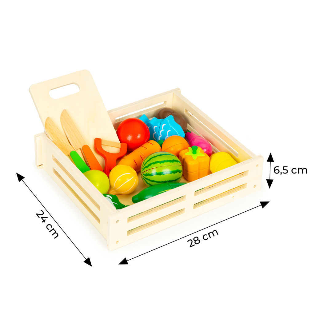 Cufundă-te în lumea fascinantă a explorării culinare cu setul nostru de fructe și legume din lemn. Acest set creativ conține 17 piese din lemn lucrate cu precizie, care nu numai că dezvoltă imaginația, dar permit micilor bucătari să se distreze de minune în bucătărie.