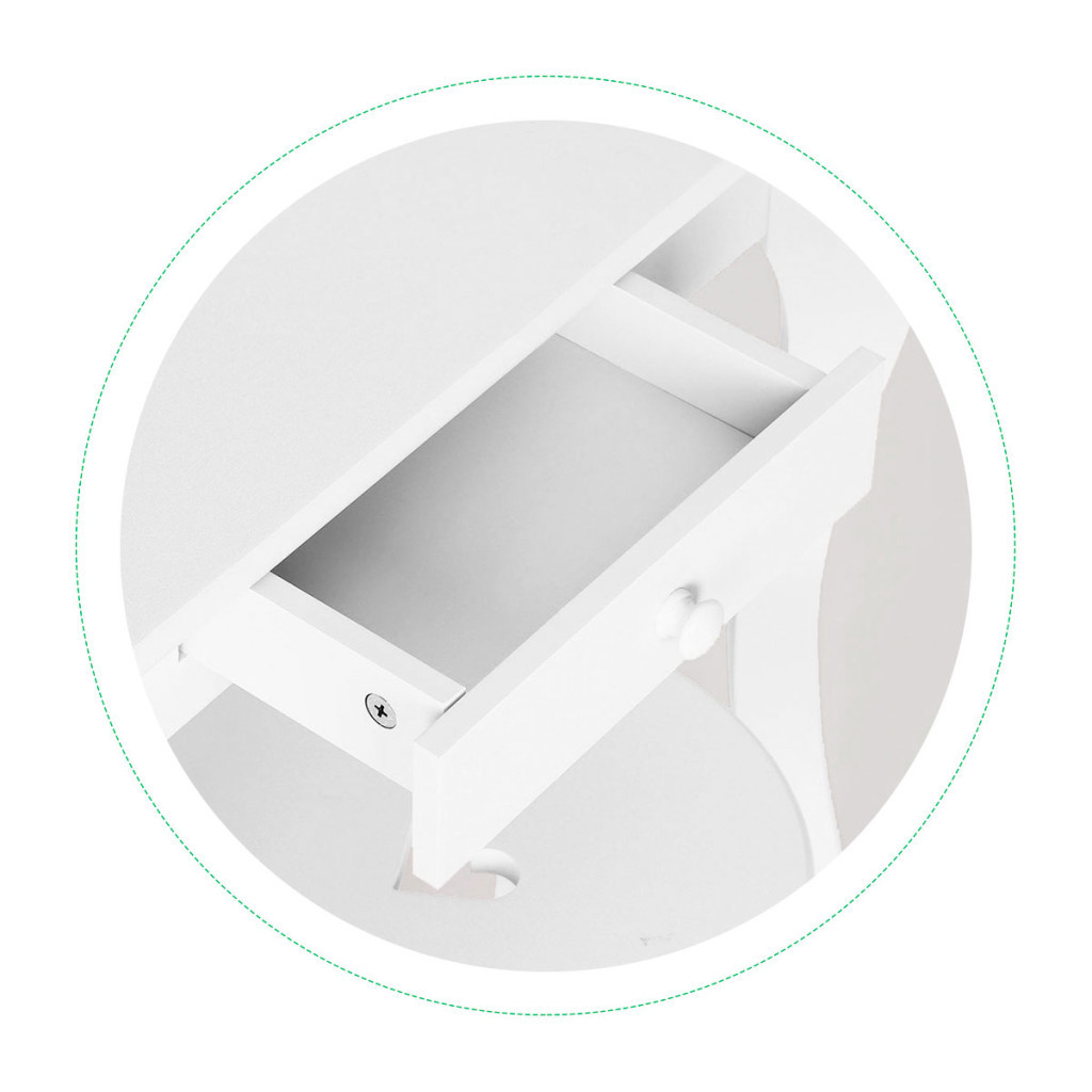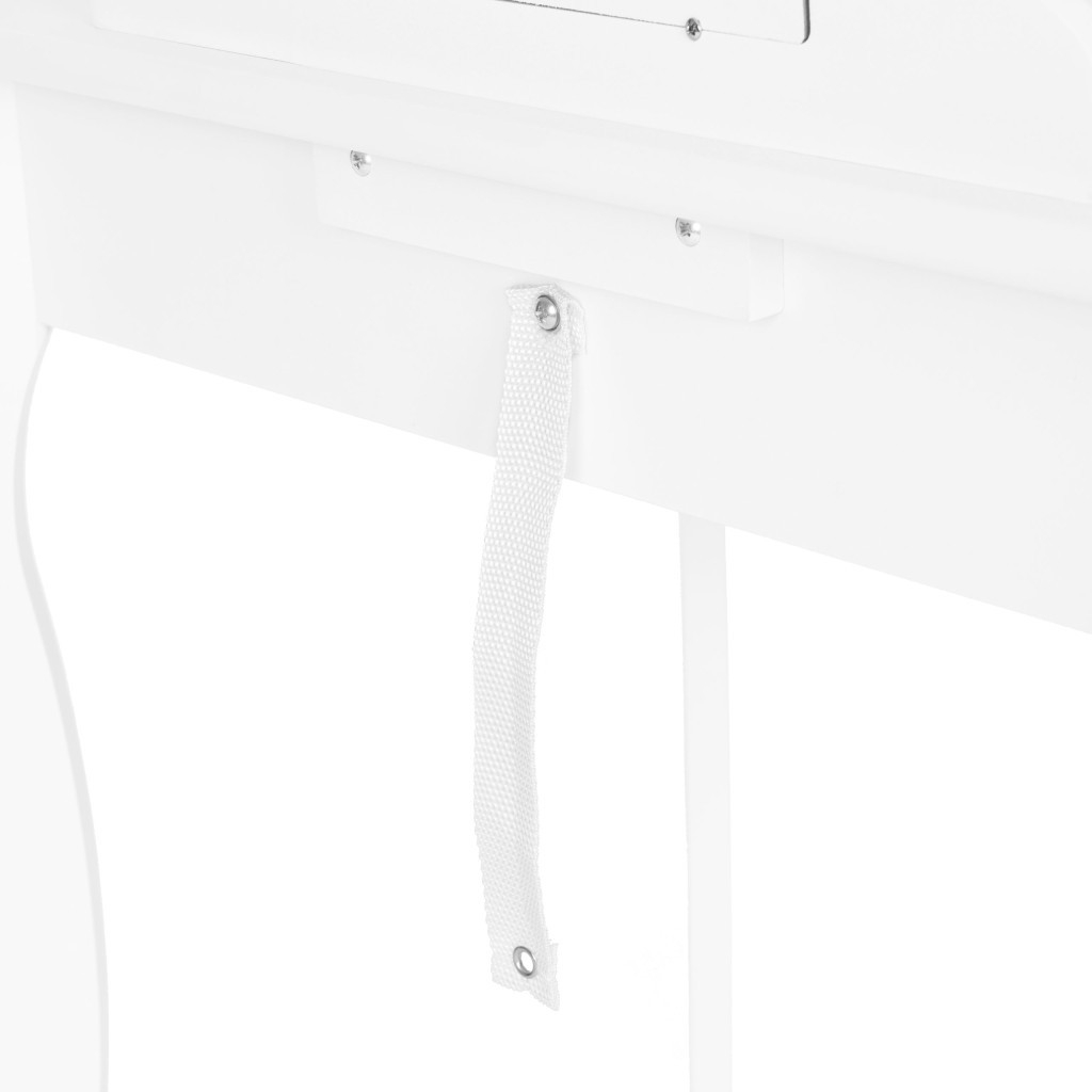 Măsuța de toaletă include, de asemenea, un sertar practic în care copiii își pot depozita comorile, bijuteriile și jucăriile. Sertarul este conceput pentru a fi ușor de deschis și închis, permițând copiilor să își organizeze mica lume în mod independent.