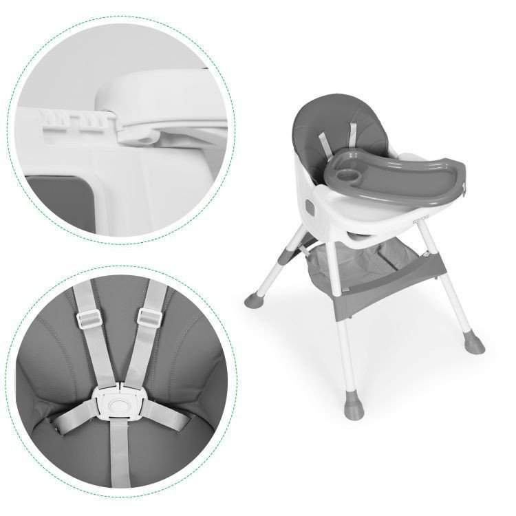 Scaunul înalt este alegerea perfectă pentru toți părinții și copilul lor - începând de la 6 luni. Acesta ușurează orele de masă, permițând copilului să stea la o masă cu adulții, ajutându-l pe copil să observe, să imite și să învețe comportamentul corect. Cu designul său modern și funcțiile sale multiple, scaunul își îndeplinește rolul perfect, asigurând o poziție sigură și confortabilă. Datorită tăvii sale largi, micuțul dvs. poate nu numai să mănânce, ci și să se joace, să construiască blocuri sau să deseneze, și va ajunge rapid să își iubească noua piesă specială de mobilier.