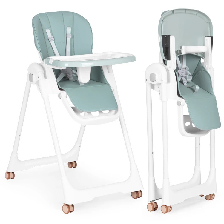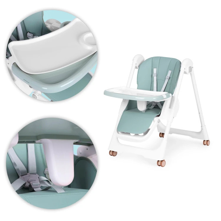 Homelux Scaun de hrănire înălțime reglabilă curele din piele ecologică tavă dublă verde