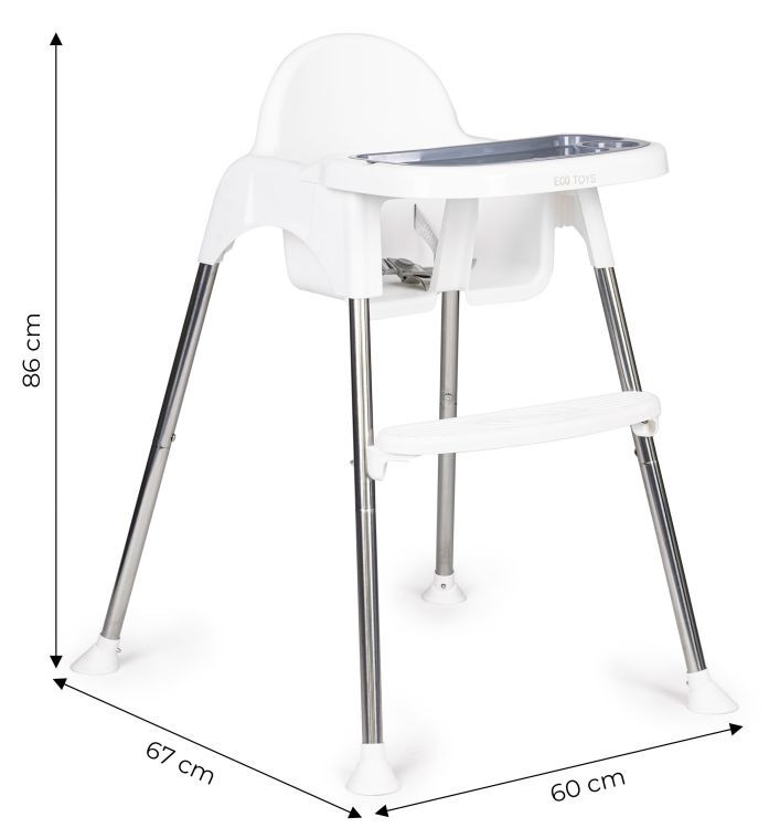 Scaunul este reglabil pe înălțime. Picioarele și suporturile pentru picioare pot fi ușor deșurubate pentru a transforma scaunul înalt într-un scaun mai jos. Atunci când micuțul tău devine mai independent și nu trebuie să îl supraveghezi tot timpul, un scaun mai jos este perfect pentru el.