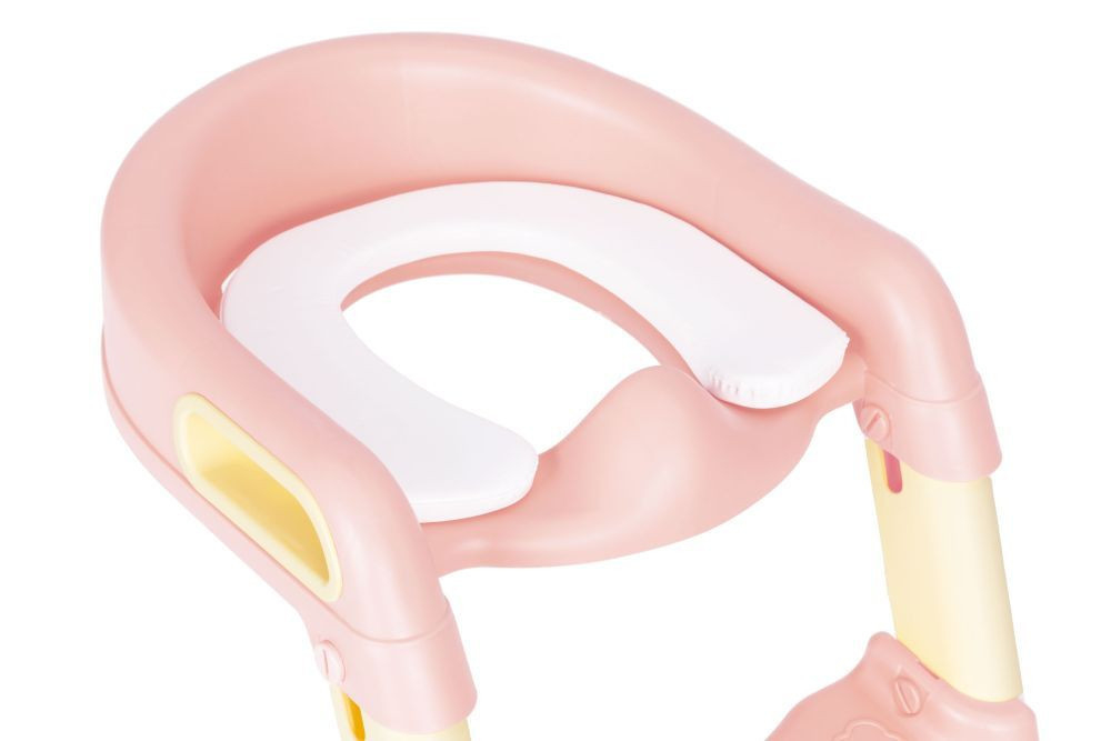 Setul este fabricat din material durabil, astfel încât servește pe deplin perioada până când copilul dvs. poate folosi toaleta independent. Treptele sunt reglabile pe înălțime, astfel încât să le puteți ajusta la înălțimea copilului dvs. Treptele au crestături speciale pentru a preveni alunecarea picioarelor atunci când se urcă pe ele. Dimensiunea capacului se potrivește perfect pe toate scaunele de toaletă, astfel încât acesta aderă perfect și nu se mișcă în timpul utilizării toaletei. Pentru a spori confortul, covorașul are mânere speciale și o inserție moale suplimentară pe care copilul să stea.
