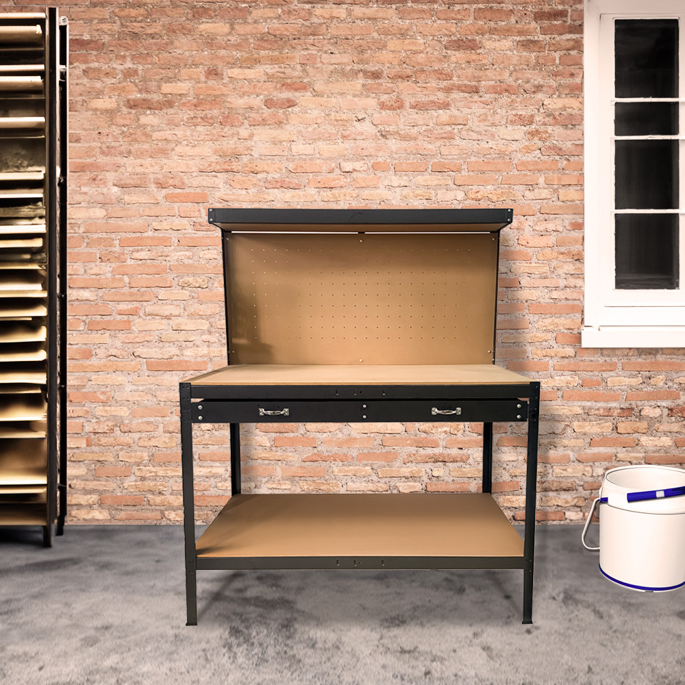 Această bancă de lucru este alegerea perfectă pentru oricine caută un spațiu de lucru profesional pentru acasă sau în atelier. Finisajul negru elegant adaugă un aspect modern spațiului tău de lucru. Ai încredere în această masă de calitate pentru o muncă eficientă și depozitare organizată!