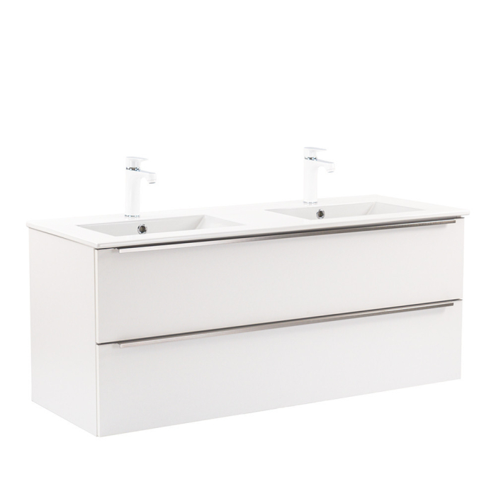 Mobilierul de baie complet Vario Trim 120 este o alegere elegantă și practică pentru băile moderne. Dimensiunile sale compacte îl fac ideal pentru băile mici și medii, iar profilul metalic al mânerului conferă spațiului un efect patinat, în timp ce designul alb pe alb îi conferă un aspect elegant. Închiderea amortizată a sertarelor și designul suspendat oferă confort și curățare ușoară, în timp ce materialele de calitate asigură o durată lungă de viață.