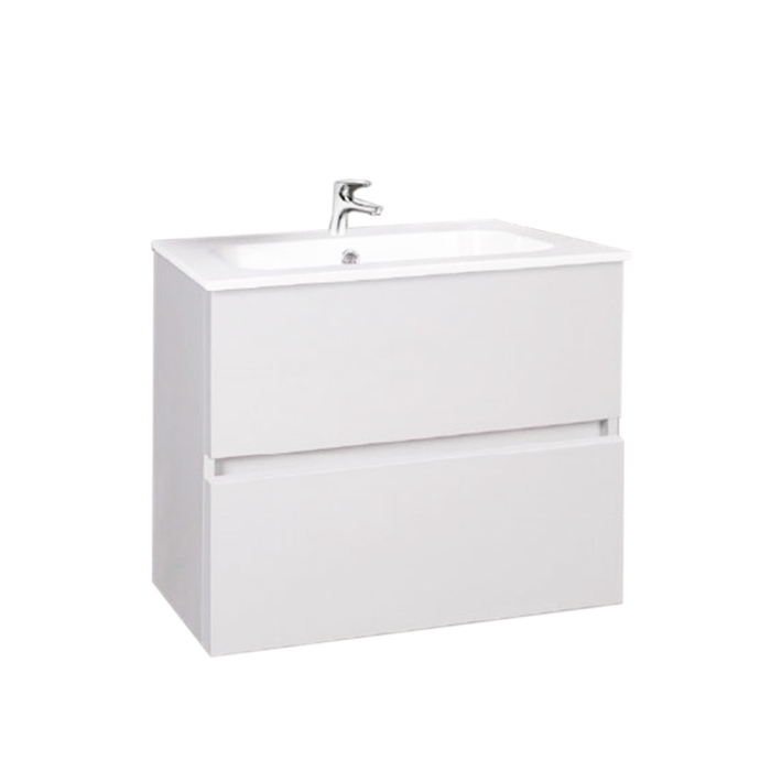 Are un corp din MDF cu grosimea de 15 mm și o suprafață albă lăcuită lucioasă, o față din MDF cu grosimea de 18 mm și o suprafață albă lăcuită lucioasă și un sistem de închidere silențioasă a sertarelor. Îl livrăm asamblat plat. Robinetul și sifonul nu sunt incluse.