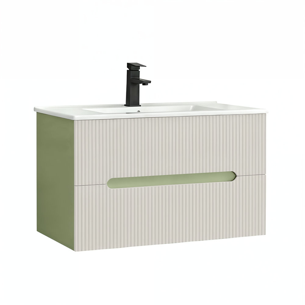 Mobilierul de baie Leziter Trent combină armonios estetica și caracterul practic. Panoul frontal canelat îi conferă un caracter curat și modern, în timp ce mânerul integrat permite o utilizare convenabilă. Fixarea pe perete creează un aspect fără efort și face curățarea podelei mai rapidă. Chiuveta din ceramică este durabilă, atemporală, rezistentă la uzura zilnică și ușor de păstrat curată.