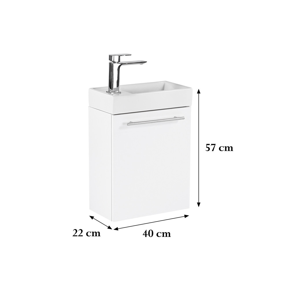 Dimensiuni compacte ale mobilei (40x57x22 cm) Sunt ideale pentru orice baie, fie că este o cameră mică sau mare. Datorită profilului său redus, nu ocupă mult spațiu, dar oferă suficient spațiu de depozitare.
