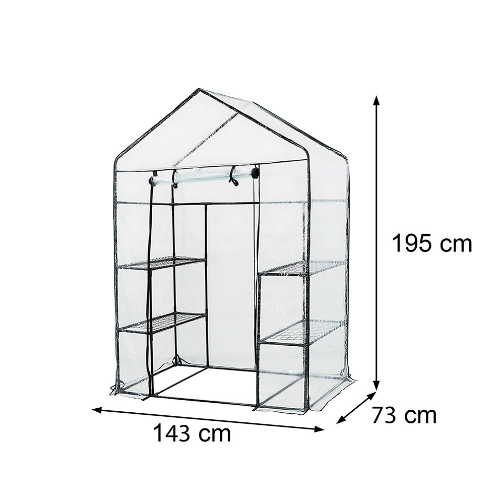 Dimensiunea de 143x73x195 cm este îngustă, dar înaltă, așa că poate fi folosită perfect în spații mai mici, oferind în același timp suficient spațiu pentru plante. Folia durabilă și rezistentă la UV protejează în mod fiabil plantele de condițiile meteorologice, inclusiv de lumina excesivă a soarelui, de frig și de vânt. Ușa rulantă nu numai că oferă acces convenabil, dar permite și o ventilație adecvată, ceea ce ajută la menținerea unui mediu intern optim.