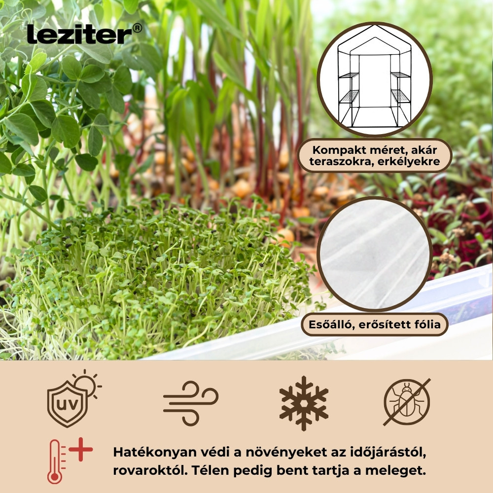 O alegere perfectă dacă ai spațiu limitat, dar vrei să-ți crești propriile plante! Sera de balcon Leziter este o soluție ideală pentru grădini mai mici, terase sau balcoane, deoarece, în ciuda designului său compact, oferă spațiu interior spațios pentru plante.
