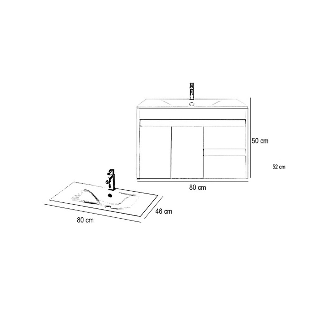 Mobilierul de baie are sertare spațioase unde se pot depozita convenabil articolele de toaletă. Datorită designului său compact , este potrivit și pentru mobilarea băilor mai mici, de exemplu în apartamentele cu panouri. Produsul este fabricat din plăci de mobilier de înaltă calitate și este prevăzut cu margini asortate în culori . Mobilierul de baie este disponibil în versiune suspendată . Produsul asamblat Livrăm noi, așa că nu trebuie să vă faceți griji cu asamblarea.
