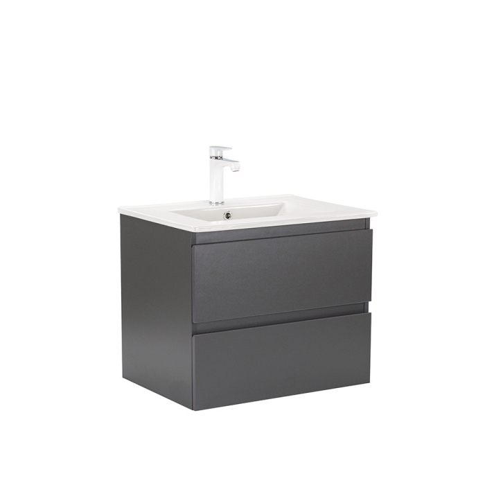 Mobilierul complet de baie Vario Forte 60 este o alegere elegantă și practică pentru o baie modernă. Dimensiunile sale compacte sunt ideale pentru băi mici și medii, închiderea la margine la 45 de grade conferă spațiului un efect modern, iar designul antracit-antracit îi conferă un aspect elegant. Sertarul cu închidere silențioasă și designul suspendat oferă confort și curățare ușoară, în timp ce materialele de calitate asigură o durată lungă de viață.