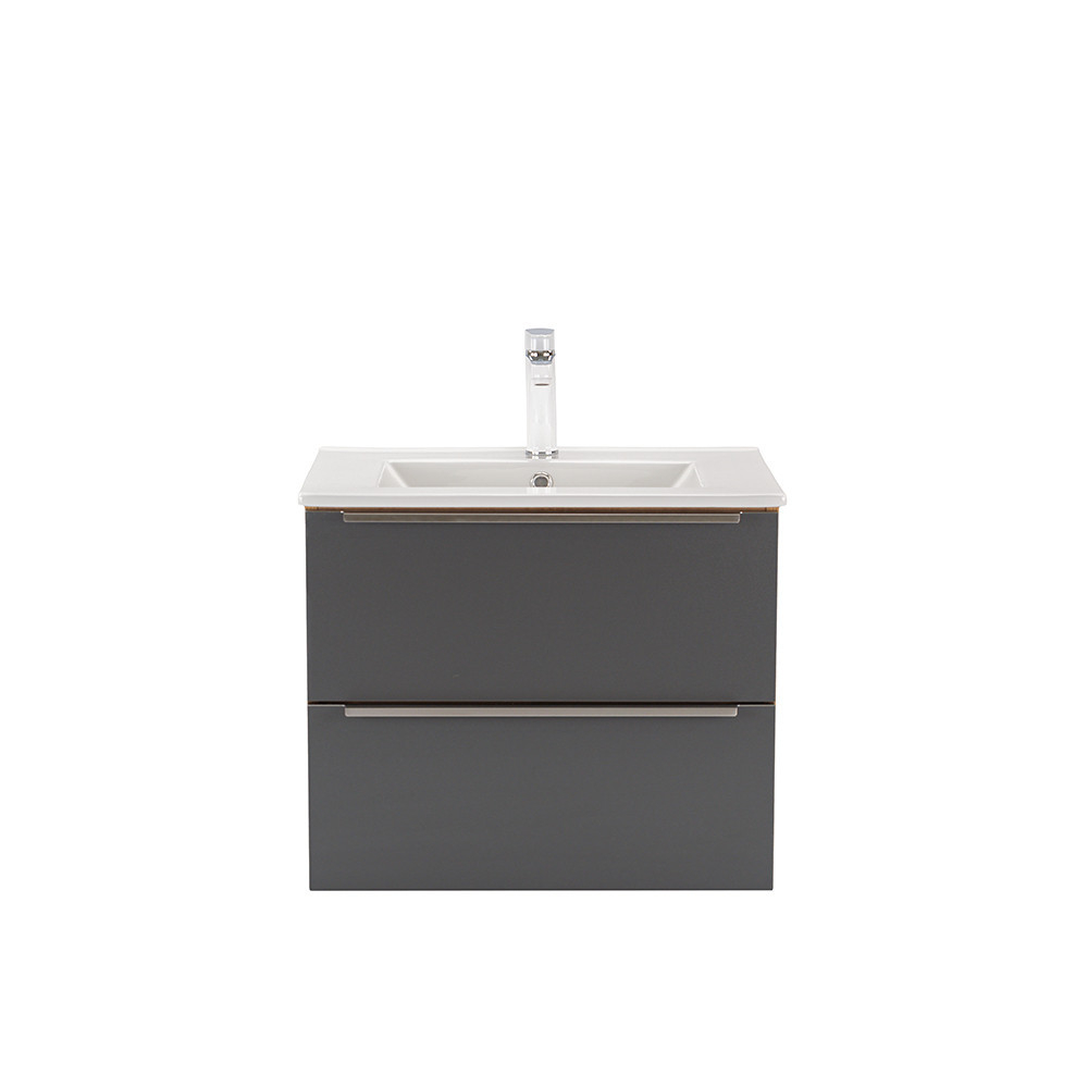 Mobilierul complet de baie Vario Trim 60 este o alegere elegantă și practică pentru o baie modernă. Dimensiunile sale compacte sunt ideale pentru băi mici și medii, iar profilul metalic al mânerului conferă un efect de patină, în timp ce designul stejar-antracit conferă spațiului un aspect elegant. Sertarul cu închidere silențioasă și designul suspendat oferă confort și curățare ușoară, în timp ce materialele de calitate asigură o durată lungă de viață.