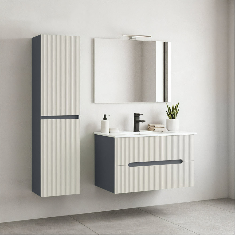 Dulapul lateral suspendat Leziter Trent poate fi unul dintre cele mai practice elemente pentru băile mici și mijlocii, deoarece nu ocupă spațiu prețios datorită fixării sale pe perete, dar oferă totuși o capacitate de depozitare semnificativă. Corpul din laminat rezistent la umezeală și partea frontală lăcuită sunt foarte rezistente la mediile umede, astfel încât își păstrează aspectul estetic în timp. Rafturile interne facilitează accesul și organizarea cosmeticelor, articolelor de toaletă sau prosoapelor, în timp ce mânerul ascuns creează un aspect general modern și curat.