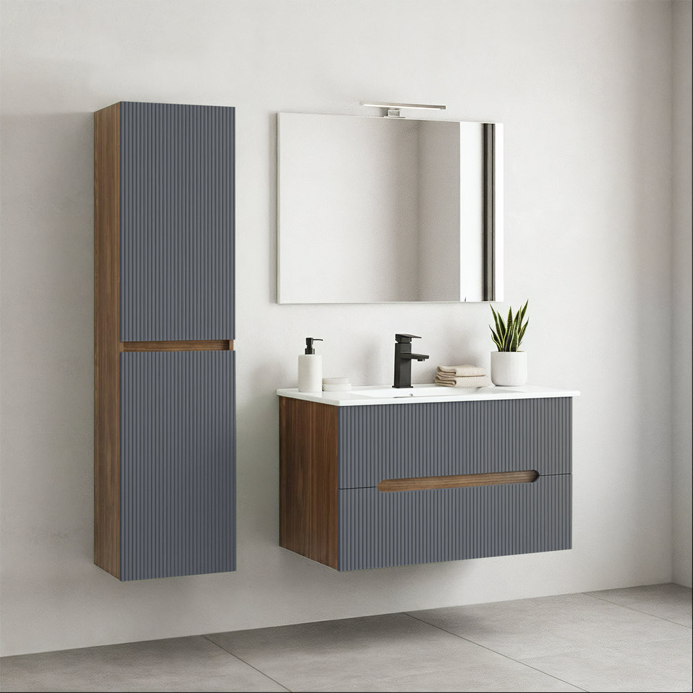 Dulapul lateral suspendat Leziter Trent poate fi unul dintre cele mai practice elemente pentru băile mici și medii, deoarece nu ocupă spațiu valoros datorită fixării pe perete, dar oferă totuși o capacitate de depozitare semnificativă. Corpul din laminat rezistent la umezeală și partea frontală lăcuită sunt foarte rezistente la mediile umede, astfel încât își păstrează aspectul estetic în timp. Rafturile interne facilitează accesul și organizarea cosmeticelor, articolelor de toaletă sau prosoapelor, în timp ce mânerul ascuns creează un aspect general modern și curat.