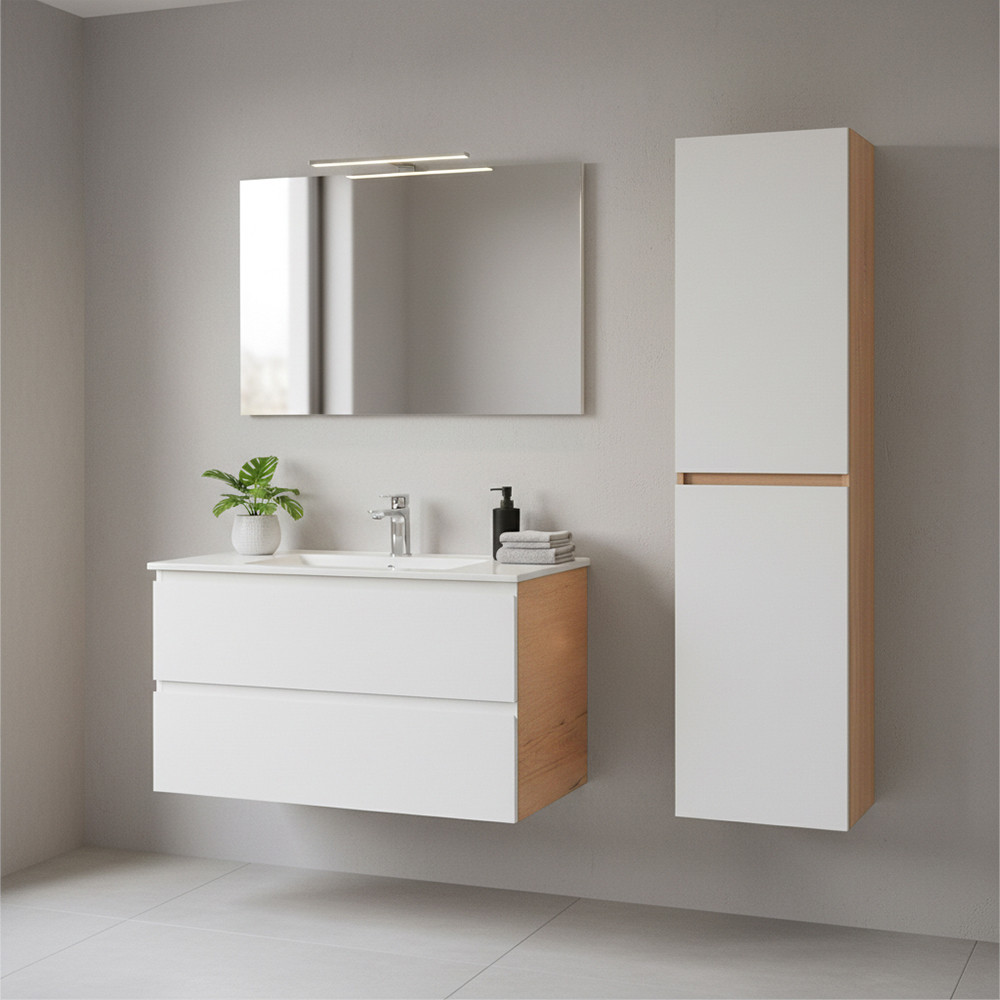 Dulapullateral suspendat Vario Forte 35 este completarea ideală pentru orice baie modernă. O alegere excelentă dacă aveți nevoie de spațiu suplimentar de depozitare într-o dimensiune compactă cu design și calitate în minte.Partea frontală din stejar și corpul alb îi conferă un aspect atemporal, curat, care se îmbină armonios cu restul familiei Vario Forte.