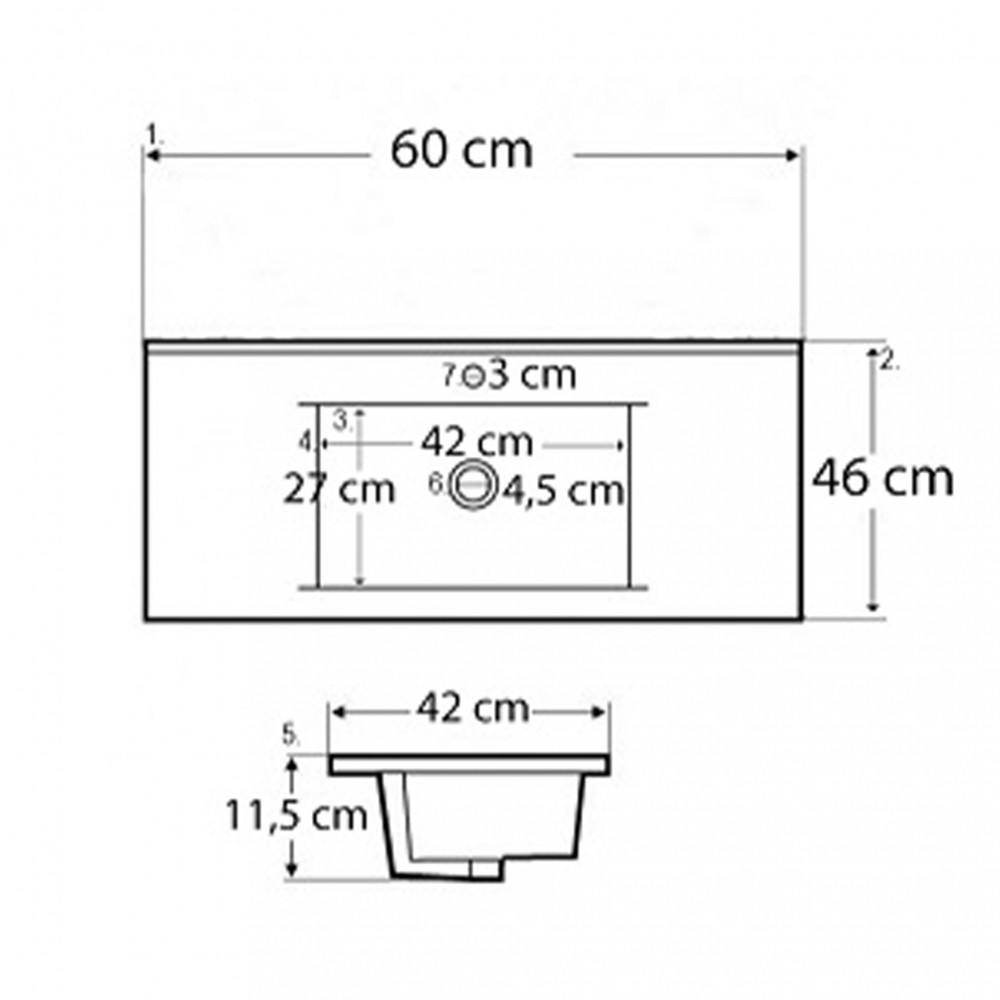 7: lățimea spațiului pentru robinet