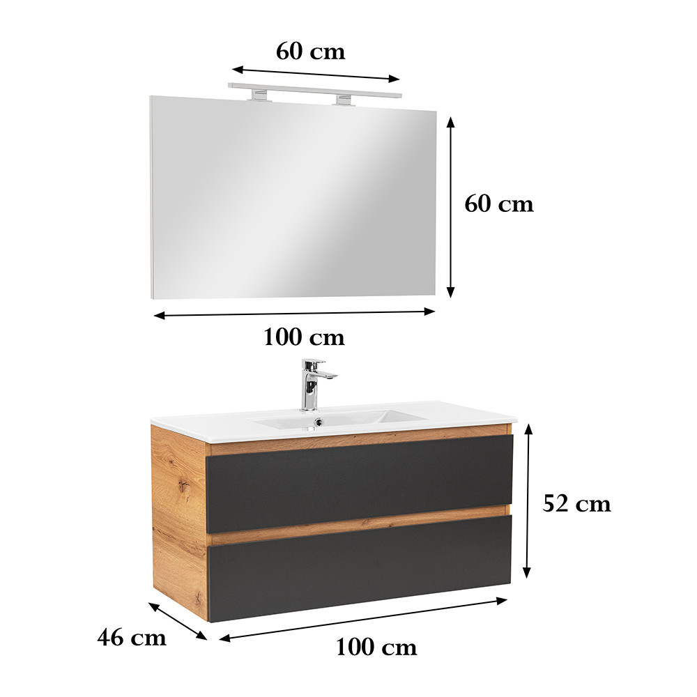 Mobilier complet de baie Vario Forte 100 stejar-antracit - mobilier de baie elegant și modern