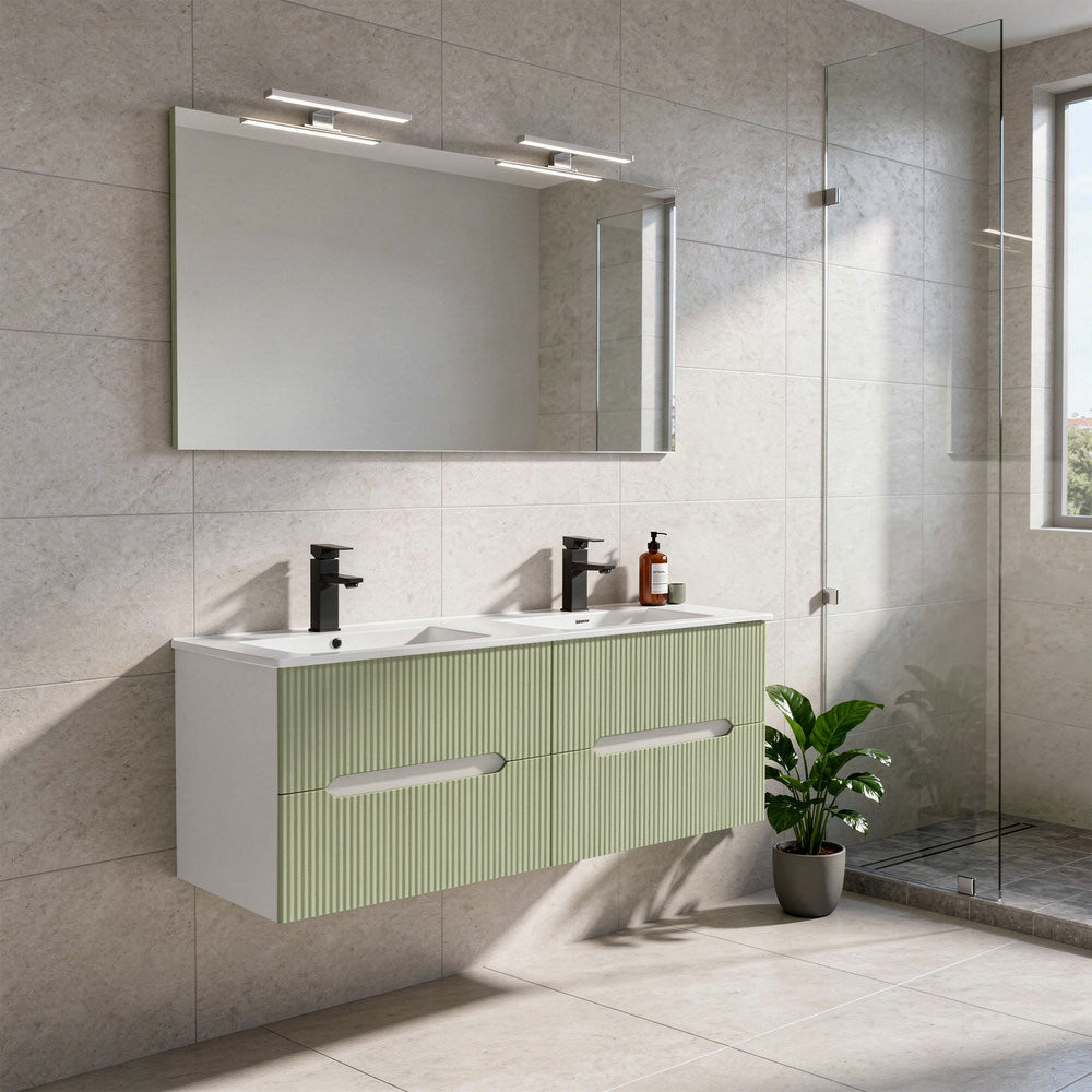 Mobilierul de baie Leziter Trent combină armonios estetica și caracterul practic. Panoul frontal canelat îi conferă un caracter curat și modern, în timp ce mânerul integrat permite o utilizare convenabilă. Fixarea pe perete creează un aspect fără efort și face curățarea podelei mai rapidă. Chiuveta din ceramică este durabilă, atemporală, rezistentă la uzura zilnică și ușor de păstrat curată.