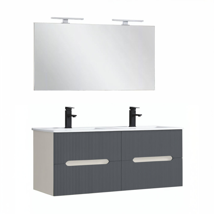 Leziter Trent Mobilier de baie 120 cm lavoar ceramic (4 sertare) cu oglindă Alb - Gri antracit