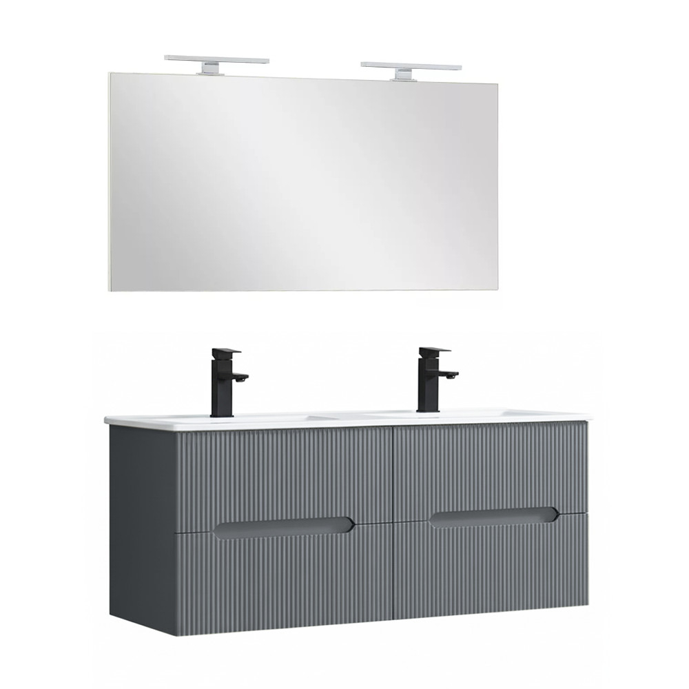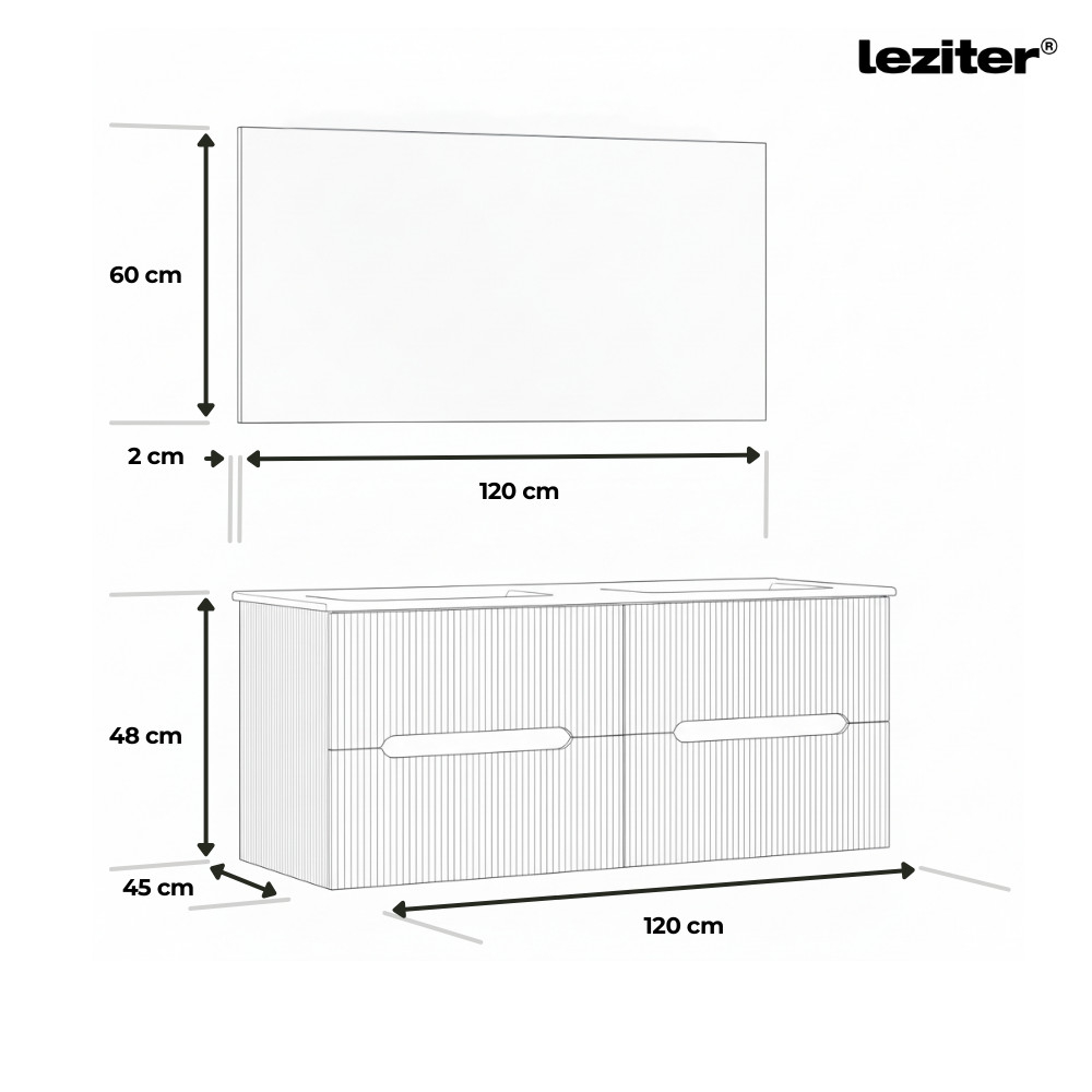 Mobilierul de baie Leziter Trent combină armonios estetica și caracterul practic. Panoul frontal canelat îi conferă un caracter curat și modern, în timp ce mânerul integrat îl face comod de utilizat. Fixarea pe perete creează un aspect fără efort și face curățarea podelei mai rapidă.