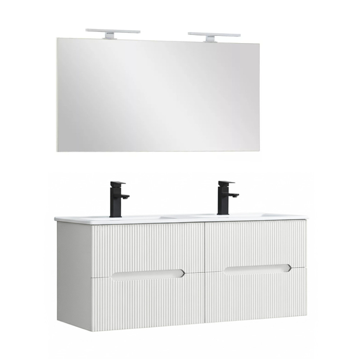 Leziter Trent Mobilier de baie 120 cm lavoar ceramic (2 sertare) cu oglindă 60x120 cm alb