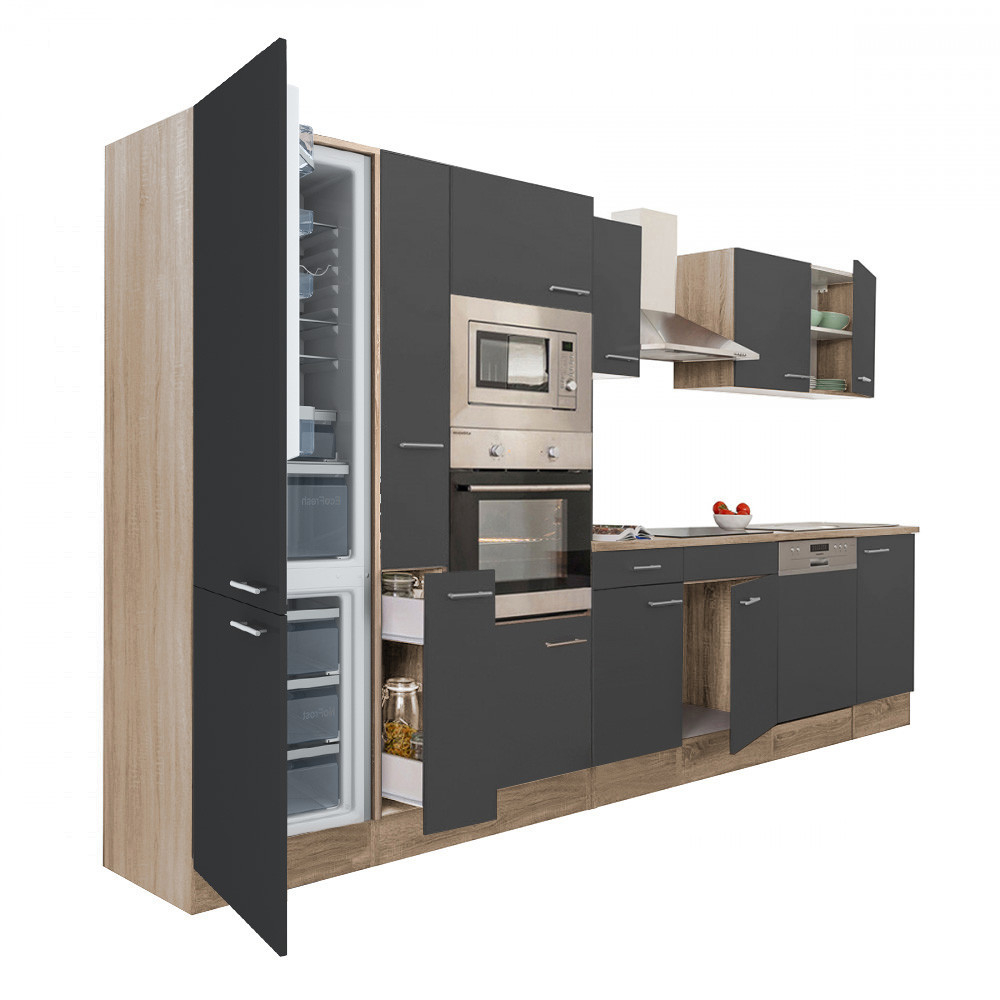 Bloc de bucătărie Yorki 370, corp din stejar Sonoma, cu față antracit satinat. Creatorul bucătăriei perfecte!