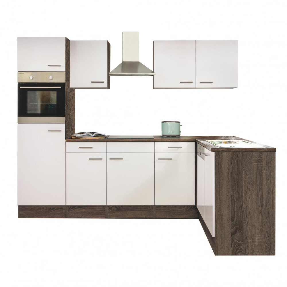 Unitate de bucătărie de colț Yorki 280, corp din stejar, cu față alb satinat. Creatorul bucătăriei perfecte!