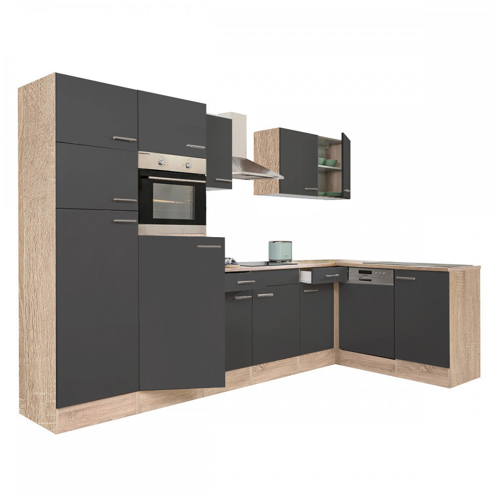 Unitate de bucătărie de colț Yorki 340 cu corp din stejar Sonoma și față antracit satinat. Creatorul bucătăriei perfecte!