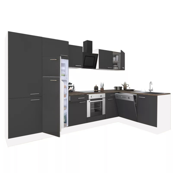 Unitate de bucătărie de colț Yorki 340 cu corp alb și față antracit satinat. Creatorul bucătăriei perfecte!