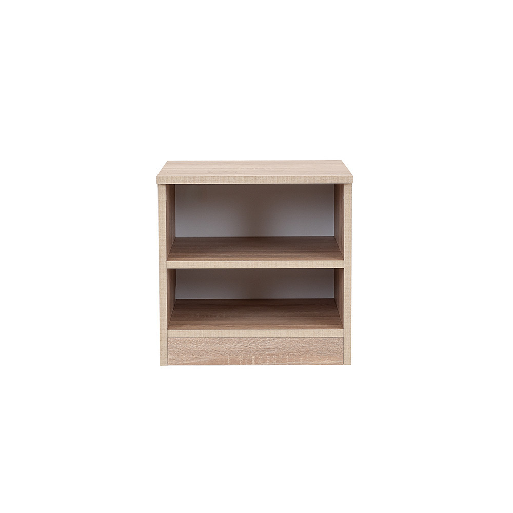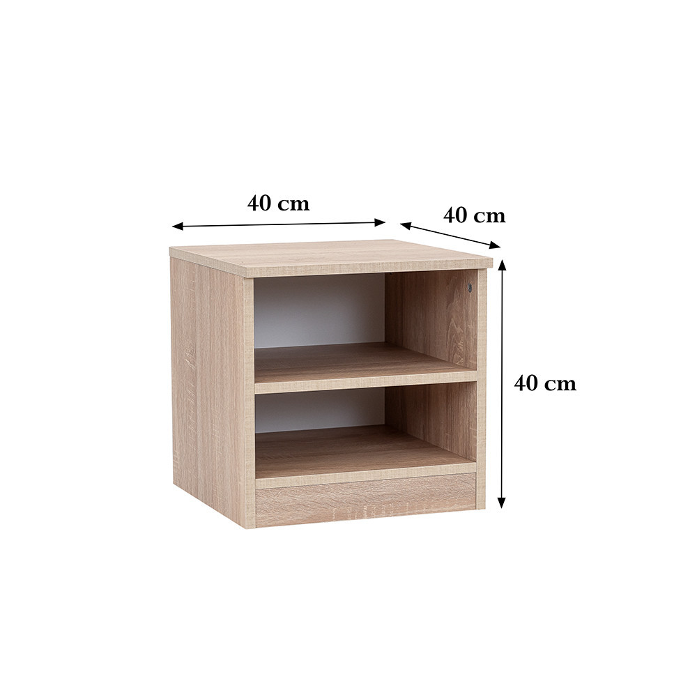 Dimensiunile noptierei de 40x40x40 cm se potrivesc perfect în dormitoarele mai mici, fără a ocupa prea mult spațiu. Noptiera este proiectată cu 2 rafturi unde puteți depozita obiecte importante, utilizate frecvent, cum ar fi cărți, ochelari sau telefonul.