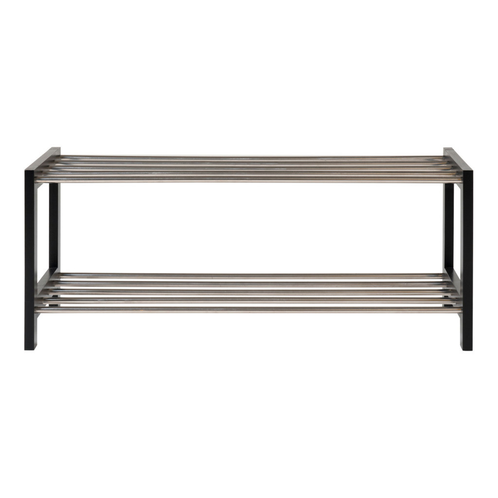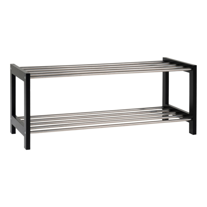 House Nordic Suport pantofi Padova lemn negru, 2 rafturi din oțel 78x34 cm