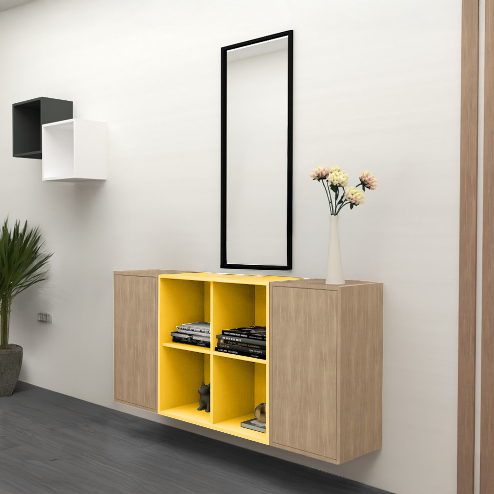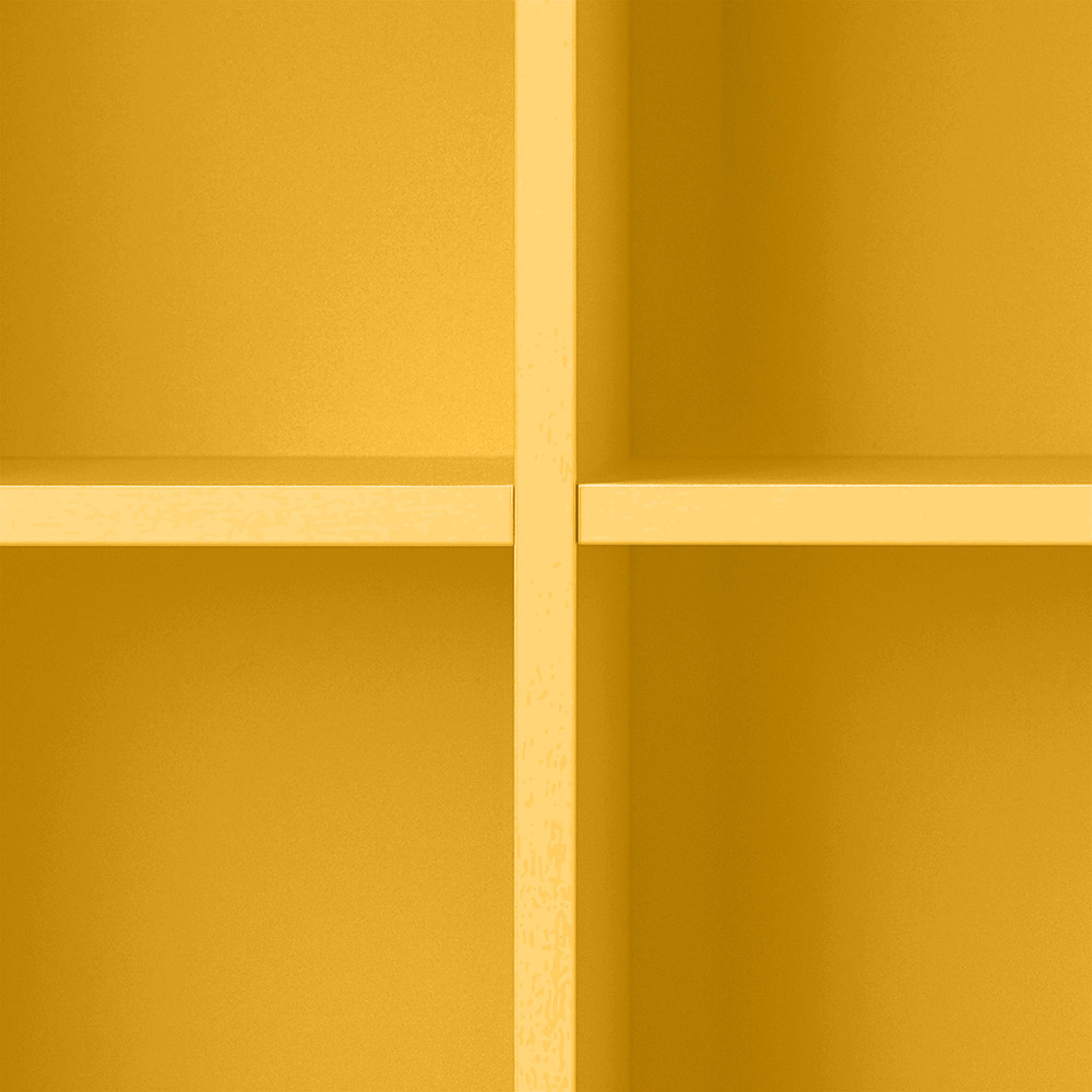 Dulapul de perete deschis Boxie galben este o alegere ideală pentru designerii de interior conștienți, proprietarii de case mai mici și oricine apreciază depozitarea variabilă și decorativă.