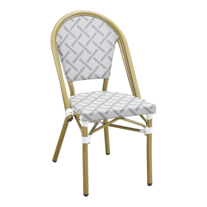 Scaun de dining Lauria - Aluminiu, textil gri, cadru cu efect de bambus Scaunul de dining Lauria este o soluție modernă și elegantă pentru mesele în aer liber. Cadrul său ușor din aluminiu cu finisaj cu efect de bambus oferă un aspect natural, în timp ce suprafața scaunului din textilenă gri este confortabilă, respirabilă și rezistentă la intemperii. Dimensiuni: înălțime 85 cm, lățime 55 cm, adâncime 57 cm, înălțimea scaunului 45 cm Material: cadru din aluminiu cu acoperire cu efect de bambus, scaun și spătar din textilenă Culoare: textilenă gri, cadru alb, cadru cu efect de bambus Avantaj special: combinația de culori este modernă și ușoară, în timp ce materialele folosite sunt rezistente la provocările mediului exterior.