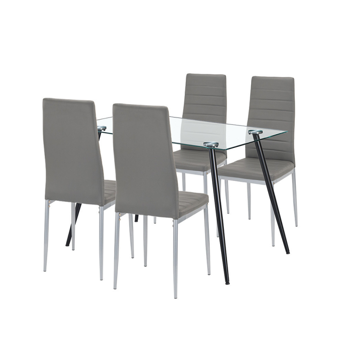 Set de sufragerie Nash 4+1 - Stil modern cu scaune gri și masă din sticlă călită