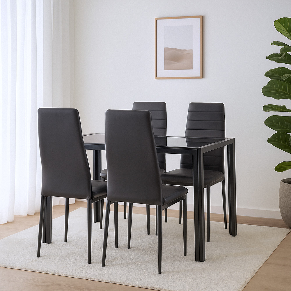 Alege setul de dining Nicole 4+1 dacă ești în căutarea unei piese de mobilier cu caracter, stil negru, durabilitate și confort!