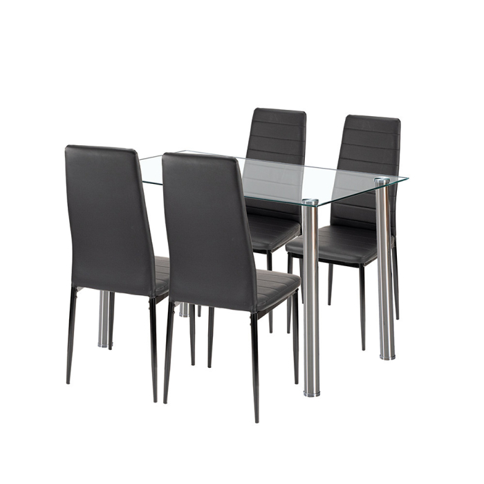 Setul de sufragerie Nolen 4+1 este alegerea ideală pentru cei care sunt în căutarea unei piese de mobilier elegante, dar funcționale. Masa din sticlă temperată Berna și scaunele de dining negre Tino NOVA formează o unitate armonioasă - designul modern, minimalist întâlnește confortul tangibil într-un singur set.