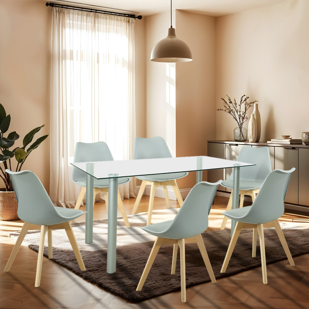 Setul de masă Midori 6 în 1 este alegerea perfectă dacă vă doriți stil modern și confort funcțional în sufrageria sau bucătăria dumneavoastră. Designul sofisticat și materialele de înaltă calitate garantează că acest set își va păstra frumusețea și confortul pe termen lung.
