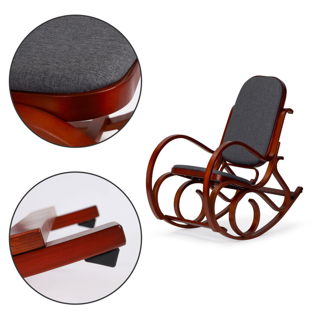 Rulourile elegante sunt realizate din lemn curbat de înaltă calitate, de culoarea nucului. În plus față de valoarea sa estetică, cadrul în sine este durabil și rigid, ceea ce înseamnă că mobilierul vă va însoți mulți ani de acum înainte.