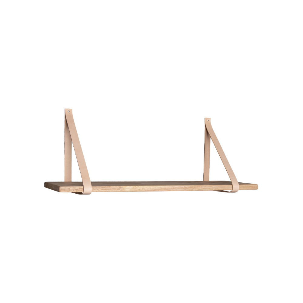 Raft de perete Forno - House Nordic | Raft din lemn natural cu curele din piele maro, 80x20 cm Acest raft Forno este o versiune mai compactă a fratelui său mai mare - oferind aceeași valoare în spații mai mici. Panoul din lemn natural cu lățimea de 80 cm este de înaltă calitate, cu un design caracteristic, care, împreună cu curelele din piele naturală, creează un interior special, cald. Fie pentru un perete mic de bucătărie, un hol sau o baie, este alegerea ideală. Poate fi combinat cu alte elemente din lemn sau metal pentru a crea o potrivire perfectă pentru aproape orice stil. Dimensiuni.