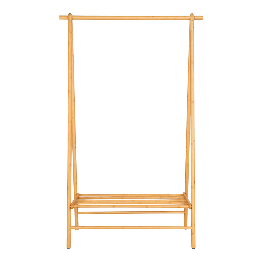 Suport de haine Manaus - bambus, natural | Simplitate care creează stil Practicitate naturală pentru utilizarea de zi cu zi Suportul de haine Manaus din bambus este combinația perfectă de formă minimalistă și utilizare ecologică a materialelor. Cu structura sa curată și aerisită, se integrează fără efort în orice interior, oferind în același timp o soluție eficientă de depozitare pentru paltoane, haine, eșarfe sau genți. Structura din bambus - căldură și durabilitate Fabricat din bambus 100% natural, cadrul este ușor, dar robust. Culoarea naturală deschisă nu este doar plăcută din punct de vedere estetic, ci oferă și un sentiment de calm și extinde vizual spațiul. Perfect pentru apartamente mici, holuri, camere de oaspeți sau dulapuri. Design curat, utilizare multifuncțională Secțiunea superioară este ideală pentru agățat haine, paltoane, eșarfe, în timp ce raftul inferior oferă un loc practic pentru pantofi, cutii sau genți. Designul deschis permite o organizare transparentă, făcând îmbrăcarea de dimineață mai rapidă și mai plăcută. Pentru cine este?