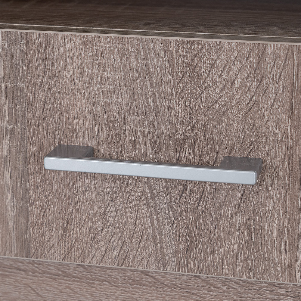 Corpul și fața din stejar York creează un aspect curat, în timp ce mânerul din plastic cu efect cromat mat oferă un aspect modern. Designul minimalist al dulapului poate fi o alegere ideală dacă preferi liniile curate.