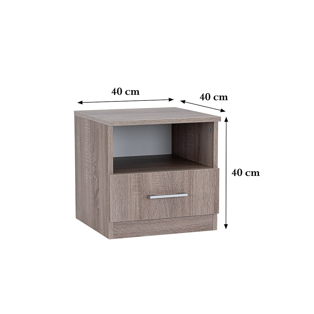 Dimensiunile noptierei de 40x40x40 cm se potrivesc perfect în dormitoarele mai mici, fără a ocupa prea mult spațiu. Sertarul cu roți se deschide și se închide ușor, oferindu-vă acces facil la cărți, ochelari sau telefon. Noptiera este proiectată cu un raft suplimentar unde puteți depozita obiecte importante, utilizate frecvent.