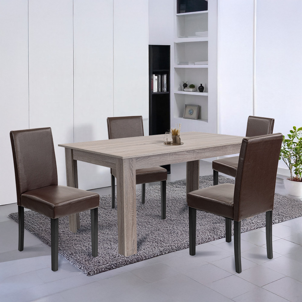 Te-ai săturat de mesele șovăielnice și de scaunele incomode și scârțâitoare care strică atmosfera meselor comune? În timpul cinelor de zi cu zi, al sărbătorilor de familie sau al întâlnirilor cu prietenii, toată lumea caută confort și o atmosferă plăcută — dar o masă instabilă sau suprafețe greu de curățat sunt doar o supărare. Mai ales dacă locuiești cu copii mici sau cu oaspeți frecvenți, aceasta poate fi o sursă constantă de stres. Setul de masă Leziter Leon 4 în 1, de culoare stejar York-maro, rezolvă această problemă definitiv: un set practic, dar elegant, care oferă patru scaune confortabile și o masă stabilă și practică — o alegere perfectă pentru acasă, birou sau catering.