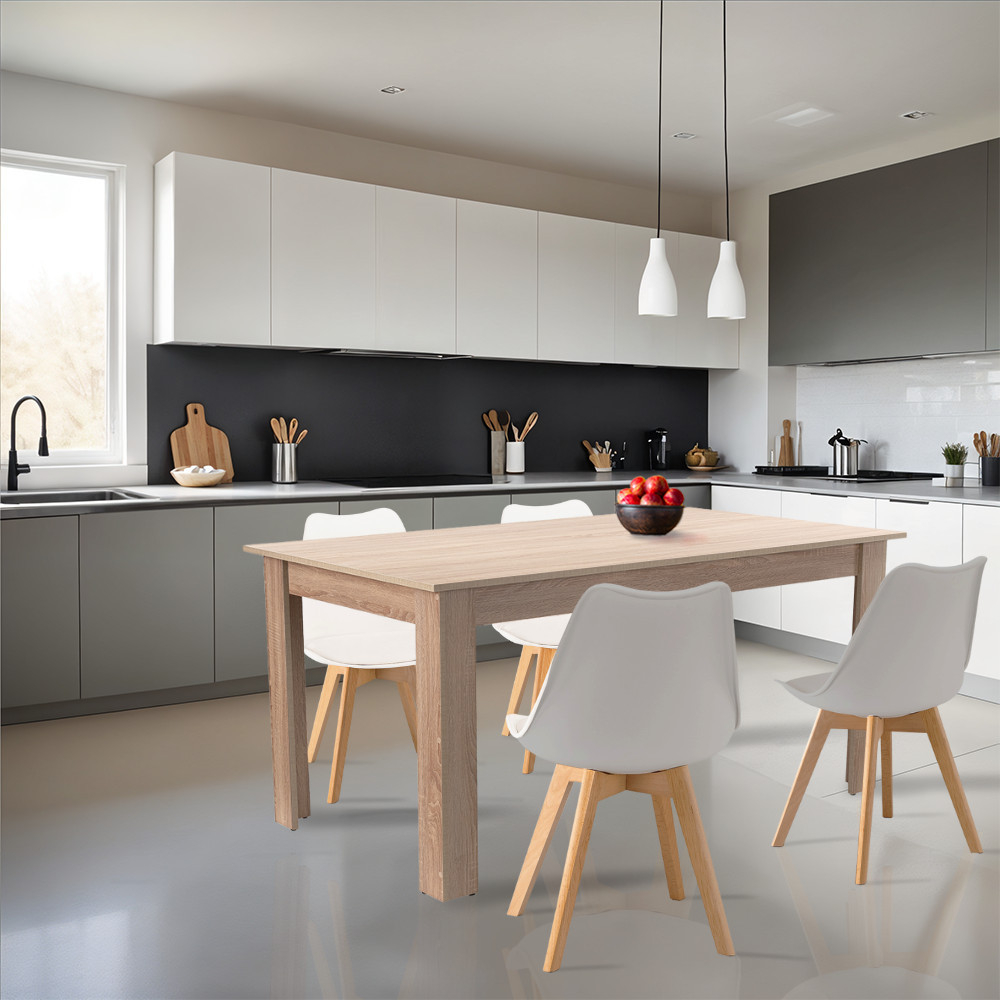 Setul de masă Lola 4 în 1 de la marca Leziter este o alegere perfectă pentru apartamente moderne, restaurante și bucătării elegante de birou. Setul este format din 4 scaune și 1 masă, o combinație armonioasă între popularul scaun de dining Silla și masa standard Yorki, combinând funcționalitatea cu un design atemporal. Setul de masă este ideal pentru 4 persoane și, datorită dimensiunilor sale, poate fi amplasat practic în camere de dimensiuni medii.