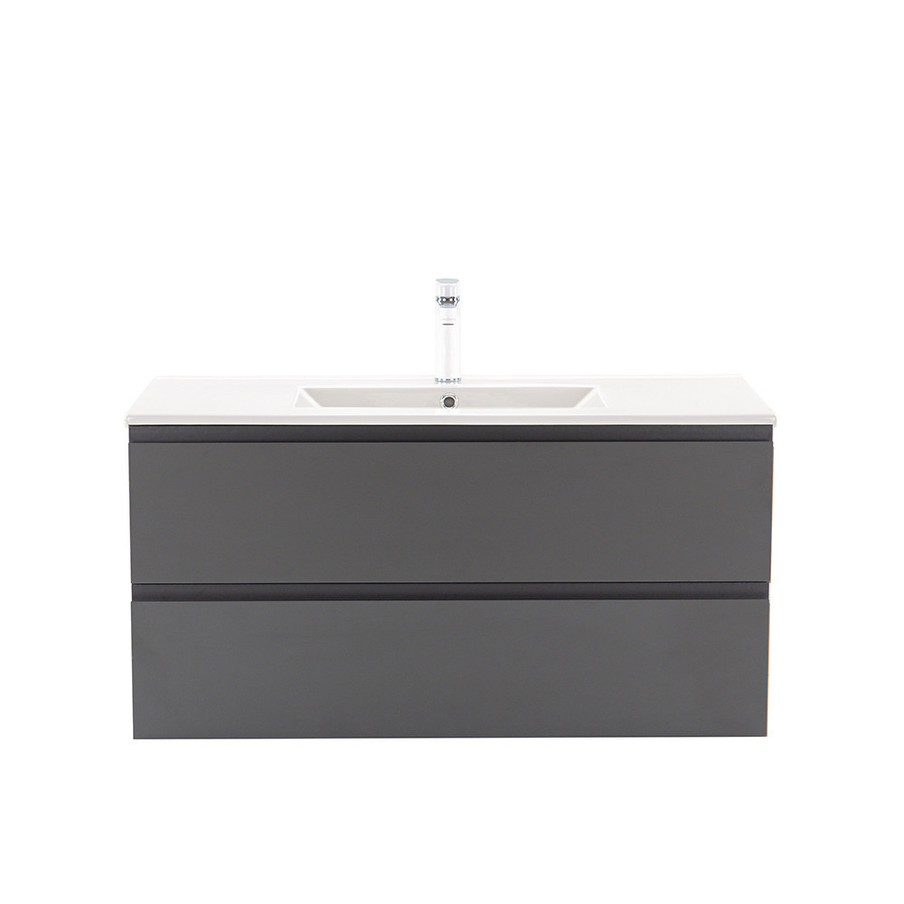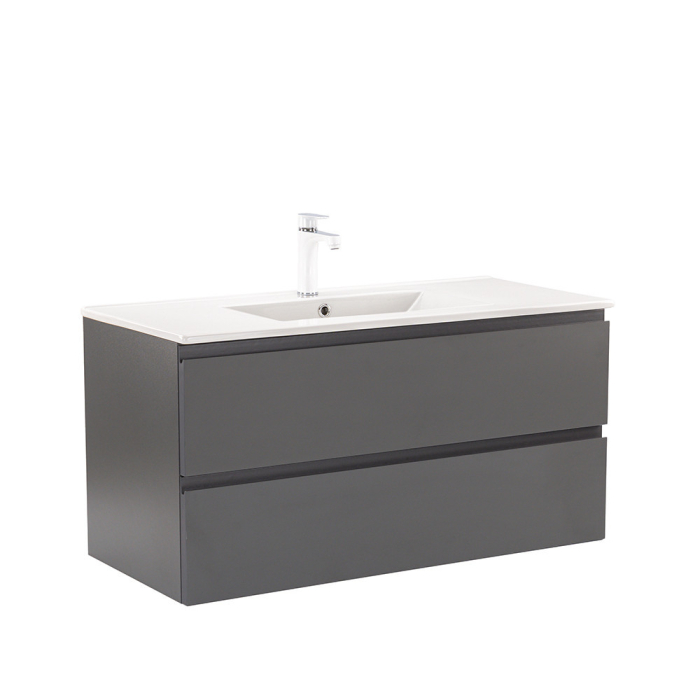 Dulapul Vario Pull 100 cu chiuvetă este o alegere elegantă și practică pentru băile moderne. Dimensiunile sale compacte o fac ideală pentru băile mici și medii, iar designul cu profil J în antracit-antracit conferă spațiului un aspect elegant. Închiderea amortizată a sertarelor și designul suspendat oferă confort și curățare ușoară, în timp ce materialele de calitate asigură o durabilitate îndelungată.