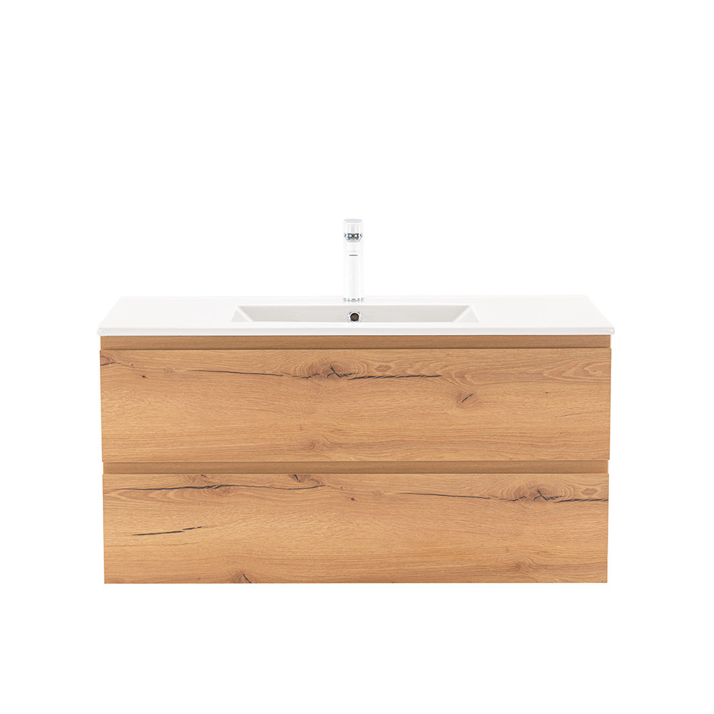 Dulapul Vario Pull 100 cu chiuvetă este o alegere elegantă și practică pentru băile moderne. Dimensiunile sale compacte îl fac ideal pentru băi mici și medii, iar designul alb și stejar cu profil J conferă spațiului un aspect elegant. Închiderea amortizată a sertarelor și designul suspendat oferă confort și curățare ușoară, în timp ce materialele de calitate asigură o durabilitate îndelungată.