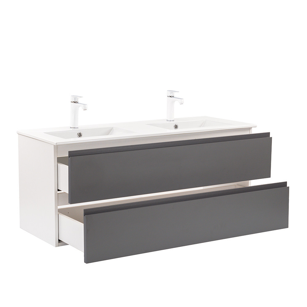 Dulapul Vario Pull 120 cu chiuvetă este o alegere elegantă și practică pentru băile moderne. Dimensiunile sale compacte îl fac ideal pentru băile mici și medii, iar designul cu profil J în alb antracit conferă spațiului un aspect elegant. Închiderea amortizată a sertarelor și designul suspendat oferă confort și curățare ușoară, în timp ce materialele de calitate asigură o durabilitate îndelungată.