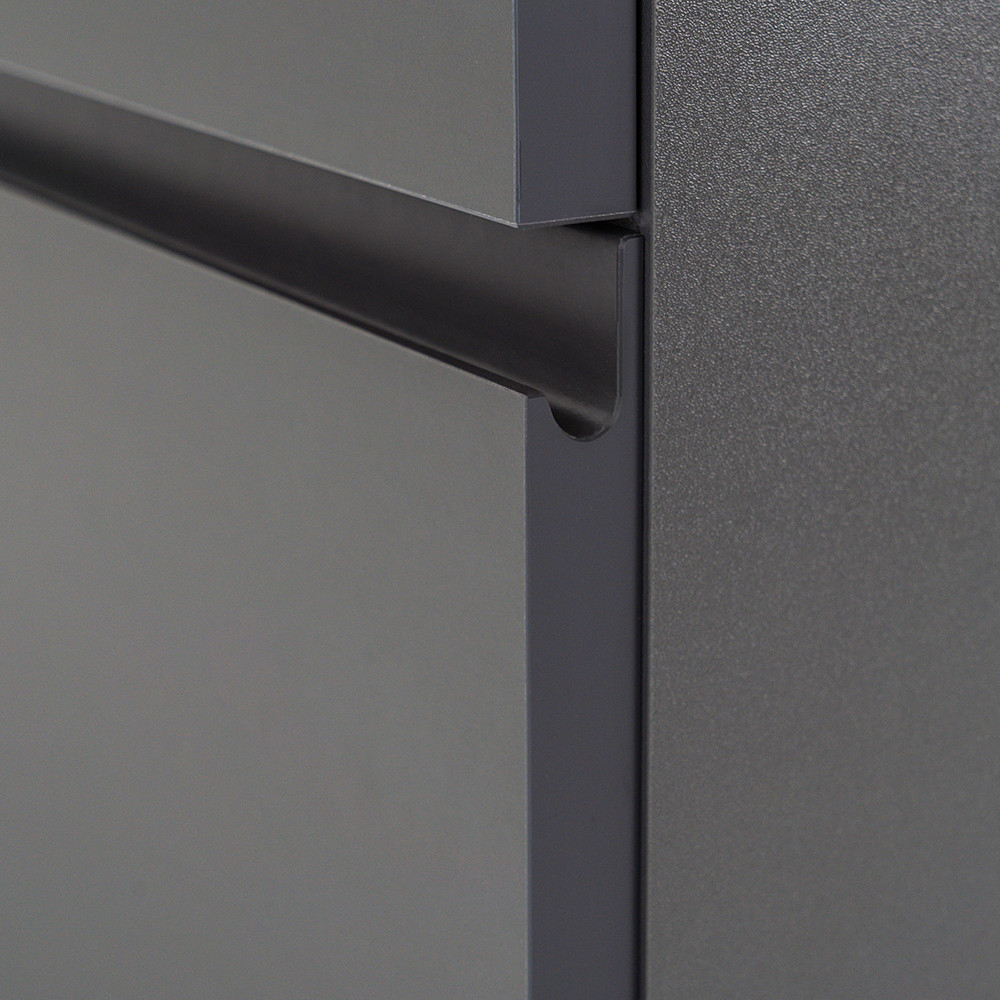 Dulapul Vario Pull 120 cu chiuvetă este o alegere elegantă și practică pentru băile moderne. Dimensiunile sale compacte o fac ideală pentru băile mici și medii, iar designul cu profil J în antracit-antracit conferă spațiului un aspect elegant. Închiderea amortizată a sertarelor și designul suspendat oferă confort și curățare ușoară, în timp ce materialele de calitate asigură o durabilitate îndelungată.
