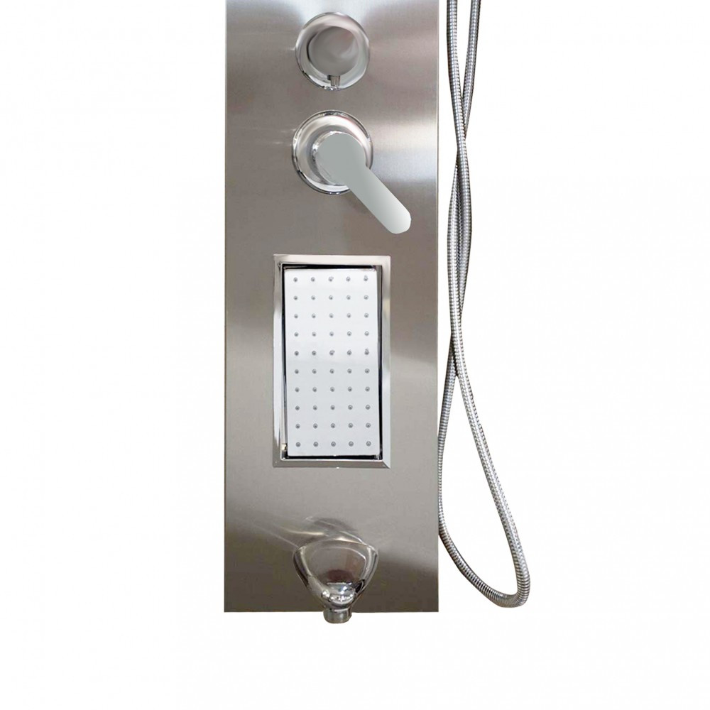 Panoul de duș cu hidromasaj ANGEL este o soluție uimitoare și practică pentru baie, umplând experiența dușului cu eleganță și confort. Acest panou de duș oferă o calitate excelentă și caracteristici avansate în fiecare aspect, pentru a face din baie o adevărată plăcere. Dimensiunile panoului de duș sunt 155 x 22 x 7 cm , ceea ce permite o instalare ușoară și o utilizare convenabilă. Designul ergonomic și proporțional asigură că acest panou de duș se integrează armonios în mediul băii și oferă o soluție de economisire a spațiului.