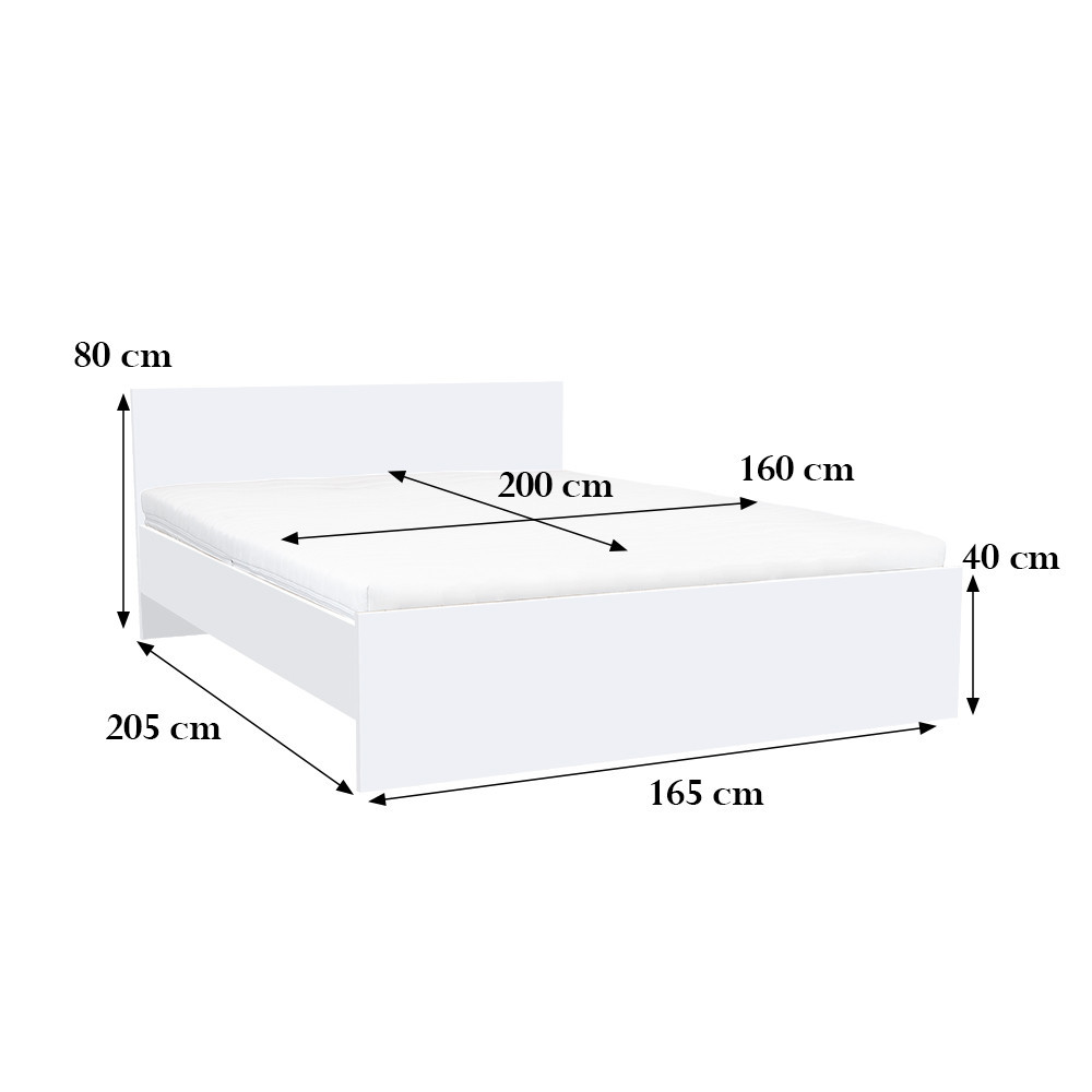 | Dimensiuni | Cadru de pat: 205 x 165 cm, Noptieră: 80 x 165 cm, Saltea (dimensiune recomandată): 200 x 160 cm. |